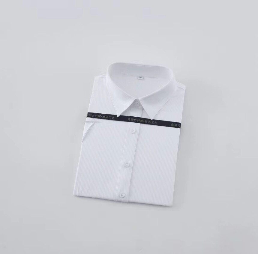 劲致雅服饰2024新品竹纤维-80支双股弹力竹纤维,柔软舒适,免烫抗皱3.5级,时刻保持优雅姿态。门襟无缝压胶,细节之处彰显匠心独运。陶瓷扣点缀!